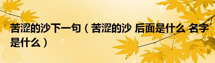苦涩的沙下一句(苦涩的沙 后面是什么 名字是什么)
