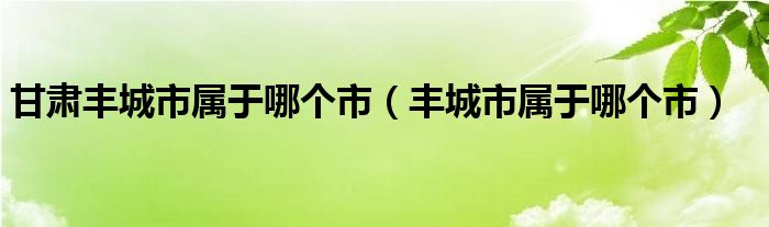 甘肃丰城市属于哪个市(丰城市属于哪个市)
