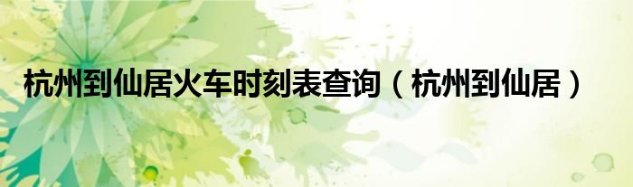关于杭州到仙居火车时刻表查询,杭州到仙居这个很多人还不知道,今天菲菲来为大家解答以上的问题,现在让我们一起来看看吧!