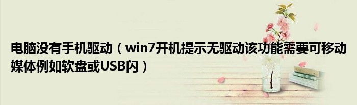 大家好,小常来为大家解答以上问题。电脑没有手机驱动,win7开机提示无驱动该功能需要可移动媒体例如软盘或USB闪很多人还不知道,现在让我们一起来看看吧!