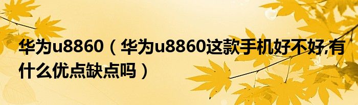 1,华为u8860这款手机好不好,有什么优点缺点吗?:还好吧,1500左右的中低端机子华为第一款升级安卓4.0的手机不过我用的时候发现了偶而触控不灵,电话漏接,电池耐用的