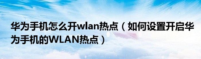 华为手机怎么开wlan热点(如何设置开启华为手机的WLAN热点)