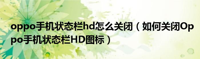oppo手机状态栏hd怎么关闭(如何关闭Oppo手机状态栏HD图标)