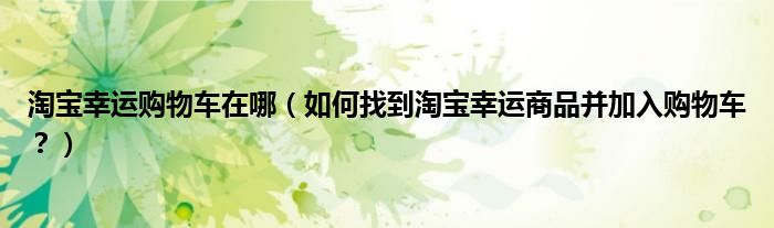 大家好,今天小悦来为大家解答以上问题。淘宝幸运购物车在哪,如何找到淘宝幸运商品并加入购物车?很多人还不知道,现在让我们一起来看看吧!