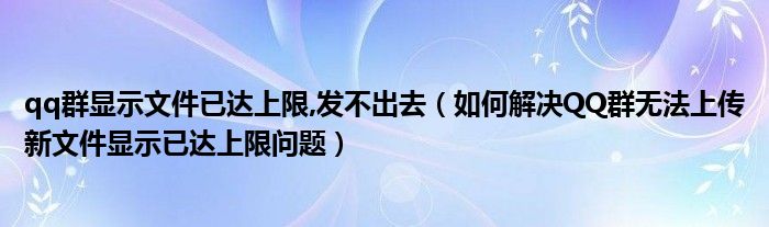 qq群显示文件已达上限,发不出去(如何解决QQ群无法上传新文件显示已达上限问题)