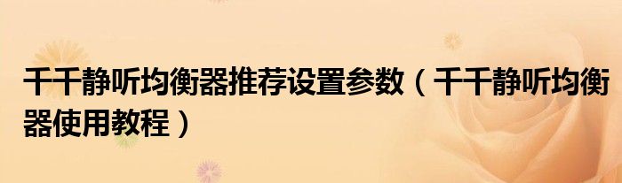 大家好,小太来为大家解答以上问题。千千静听均衡器推荐设置参数,千千静听均衡器使用教程很多人还不知道,现在让我们一起来看看吧!