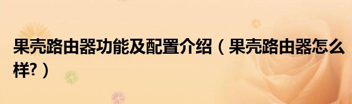 大家好,小太来为大家解答以上问题。果壳路由器功能及配置介绍,果壳路由器怎么样?很多人还不知道,现在让我们一起来看看吧!