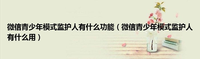 微信青少年模式监护人有什么功能(微信青少年模式监护人有什么用)