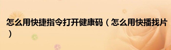 大家好,慧慧来为大家解答以上问题,怎么用快捷指令打开健康码,怎么用快播找片很多人还不知道,现在让我们一起来看看吧!