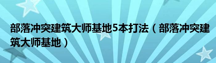 大家好,慧慧来为大家解答以上问题,部落冲突建筑大师基地5本打法,部落冲突建筑大师基地很多人还不知道,现在让我们一起来看看吧!