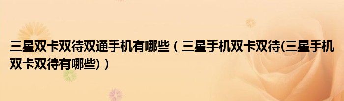大家好,小常来为大家解答以上问题。三星双卡双待双通手机有哪些,三星手机双卡双待(三星手机双卡双待有哪些)很多人还不知道,现在让我们一起来看看吧!