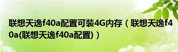 大家好,小常来为大家解答以上问题。联想天逸f40a配置可装4G内存,联想天逸f40a(联想天逸f40a配置)很多人还不知道,现在让我们一起来看看吧!
