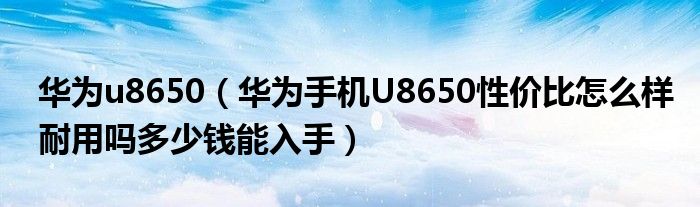 1,华为手机U8650性价比怎么样?耐用吗?多少钱能入手?:它的真正性价比在于它是联通定制机,缴费赠机,性能还是不错的,1000元左右