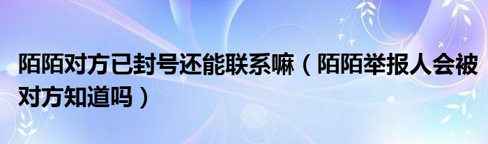 大家好,跳跳为你解答以上问题。陌陌对方已封号还能联系嘛,陌陌举报人会被对方知道吗这个问题很多人还不知道,现在让我们一起来看看吧!