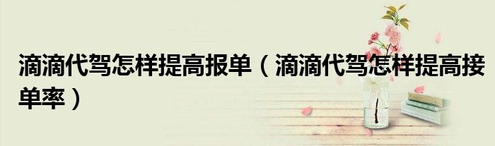 大家好,跳跳为你解答以上问题。滴滴代驾怎样提高报单,滴滴代驾怎样提高接单率这个问题很多人还不知道,现在让我们一起来看看吧!