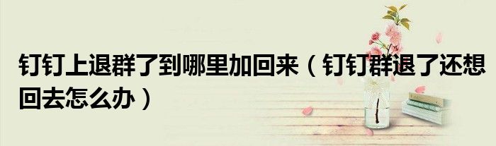 大家好,跳跳为你解答以上问题。钉钉上退群了到哪里加回来,钉钉群退了还想回去怎么办这个问题很多人还不知道,现在让我们一起来看看吧!