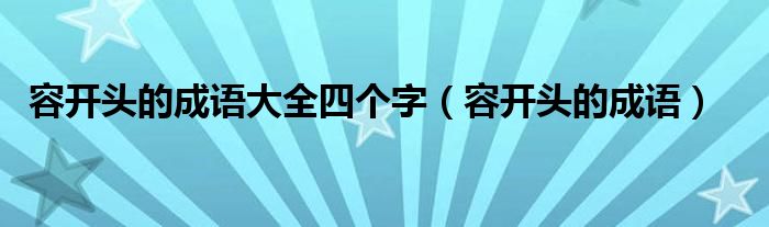 大家好,小晋来为大家解答以下问题,关于容开头的成语大全四个字,容开头的成语很多人还不知道,今天让我们一起来看看吧!