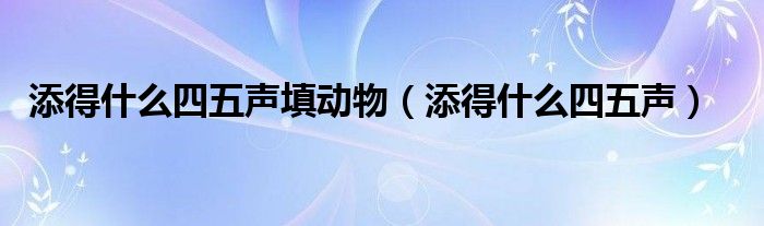 大家好,小晋来为大家解答以下问题,关于添得什么四五声填动物,添得什么四五声很多人还不知道,今天让我们一起来看看吧!