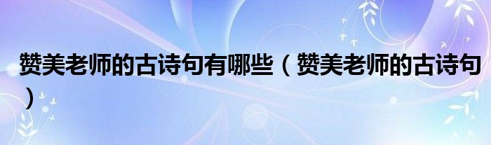 大家好,小晋来为大家解答以下问题,关于赞美老师的古诗句有哪些,赞美老师的古诗句很多人还不知道,今天让我们一起来看看吧!