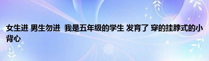 关于女生进 男生勿进 我是五年级的学生 发育了 穿的挂脖式的小背心这个很多人还不知道,今天菲菲来为大家解答以上的问题,现在让我们一起来看看吧!