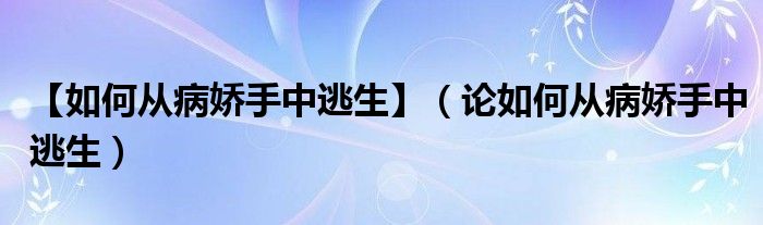 关于【如何从病娇手中逃生】,论如何从病娇手中逃生这个很多人还不知道,今天菲菲来为大家解答以上的问题,现在让我们一起来看看吧!