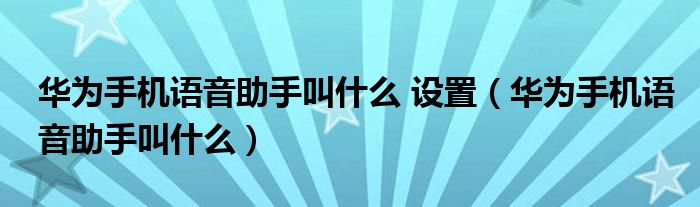 华为手机语音助手叫什么设置(华为手机语音助手叫什么)