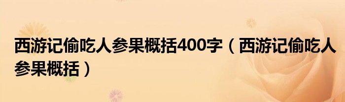 关于西游记偷吃人参果概括400字,西游记偷吃人参果概括这个很多人还不知道,今天菲菲来为大家解答以上的问题,现在让我们一起来看看吧!