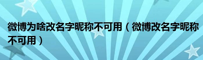 大家好,小晋来为大家解答以下问题,关于微博为啥改名字昵称不可用,微博改名字昵称不可用很多人还不知道,今天让我们一起来看看吧!