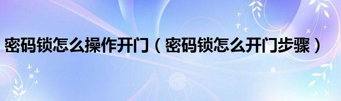 大家好,小晋来为大家解答以下问题,关于密码锁怎么操作开门,密码锁怎么开门步骤很多人还不知道,今天让我们一起来看看吧!
