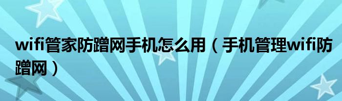 大家好,小晋来为大家解答以下问题,关于wifi管家防蹭网手机怎么用,手机管理wifi防蹭网很多人还不知道,今天让我们一起来看看吧!