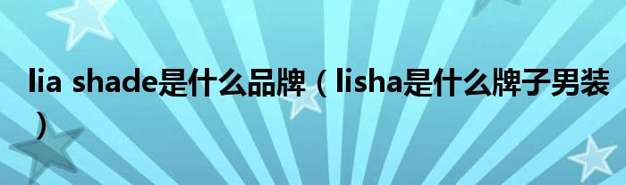 最佳答案大家好,小晋来为大家解答以下问题,关于lia shade是什么品牌,lisha是什么牌子男装很多人还不知道,今天让我们一起来看看吧!1、丽莎是上海的一个低端男装品牌,是中国的名人鲨鱼。2、丽莎男装创立于2003年,属于男装快消品牌。3、其设计多以简约、时尚、休闲为主,深受男性喜爱。本文到此结束,希...