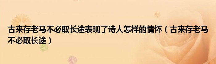古来存老马不必取长途表现了诗人怎样的情怀(古来存老马不必取长途)