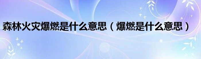 大家好,小联来为大家解答以上的问题。森林火灾爆燃是什么意思,爆燃是什么意思这个很多人还不知道,现在让我们一起来看看吧!