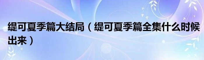 关于缇可夏季篇大结局,缇可夏季篇全集什么时候出来这个很多人还不知道,今天菲菲来为大家解答以上的问题,现在让我们一起来看看吧!