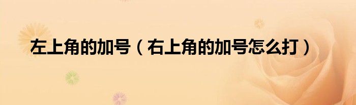 关于左上角的加号,右上角的加号怎么打这个很多人还不知道,今天菲菲来为大家解答以上的问题,现在让我们一起来看看吧!