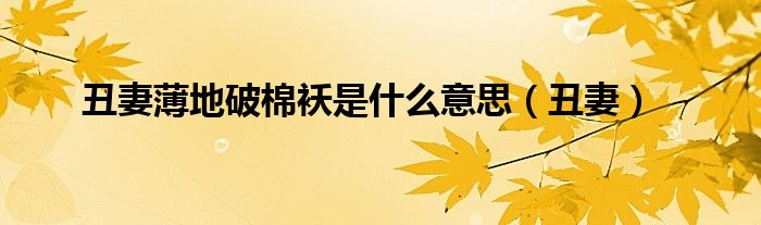 关于丑妻薄地破棉袄是什么意思,丑妻这个很多人还不知道,今天菲菲来为大家解答以上的问题,现在让我们一起来看看吧!