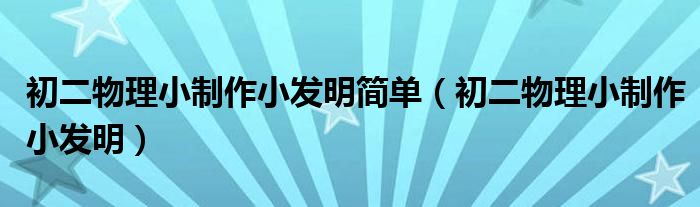 关于初二物理小制作小发明简单,初二物理小制作小发明这个很多人还不知道,今天菲菲来为大家解答以上的问题,现在让我们一起来看看吧!