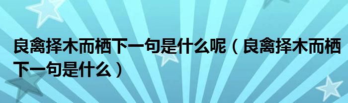关于良禽择木而栖下一句是什么呢,良禽择木而栖下一句是什么这个很多人还不知道,今天菲菲来为大家解答以上的问题,现在让我们一起来看看吧!