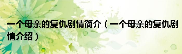 一个母亲的复仇剧情简介(一个母亲的复仇剧情介绍)