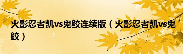 关于火影忍者凯vs鬼鲛连续版,火影忍者凯vs鬼鲛这个很多人还不知道,今天菲菲来为大家解答以上的问题,现在让我们一起来看看吧!