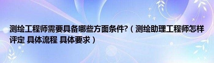 测绘工程师需要具备哪些方面条件?(测绘助理工程师怎样评定 具体流程 具体要求)